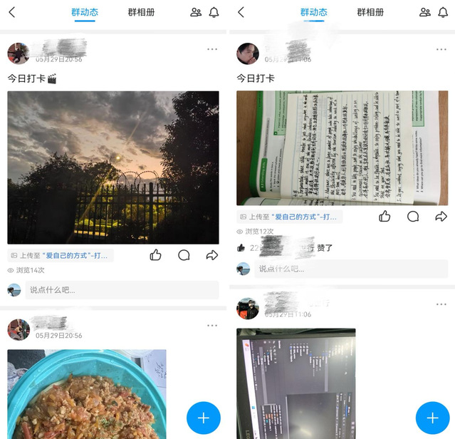 “爱自己的方式”10天打卡活动持续引发参与热潮。活动设置六大主题方向:从关注健康的“微小确幸”到记录情绪的“心情日记”;从整理数字空间的“断舍离”到增强自信的“夸夸实验”;再到促进身心平衡的“运动塑心”和“学习打卡”。参与同学纷纷表示,这个活动帮助他们养成了关爱自己的好习惯。