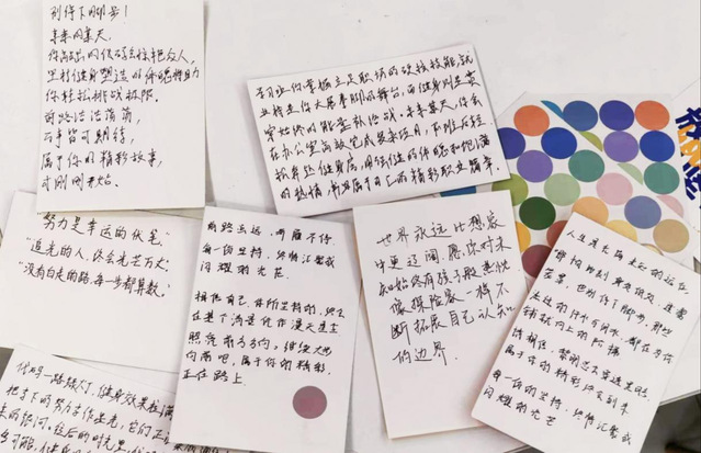 在中心校区1号楼青年之家,“爱的寄语”活动正在温馨地进行,一张张色彩绚丽、图案精巧的明信片有序陈列。同学们纷纷挑选心仪的明信片,用文字或图画表达真挚情感。有的写下“愿自己永远保持热爱”的青春誓言,有的绘制全家福寄托思念,还有的则用活泼可爱的图案,描绘出与朋友共度的欢乐时光,将美好的回忆永远定格。创作结束后,同学们怀着满心的爱意,将一张张承载着深情厚谊的明信片,用彩色夹子夹在绳子上。渐渐地,一面汇聚了无数温暖与爱意的寄语墙呈现在眼前,形成了一道温暖的校园风景线。同学们纷纷表示:“这个环节让我们学会了表达情感,更感受到被理解的温暖。”